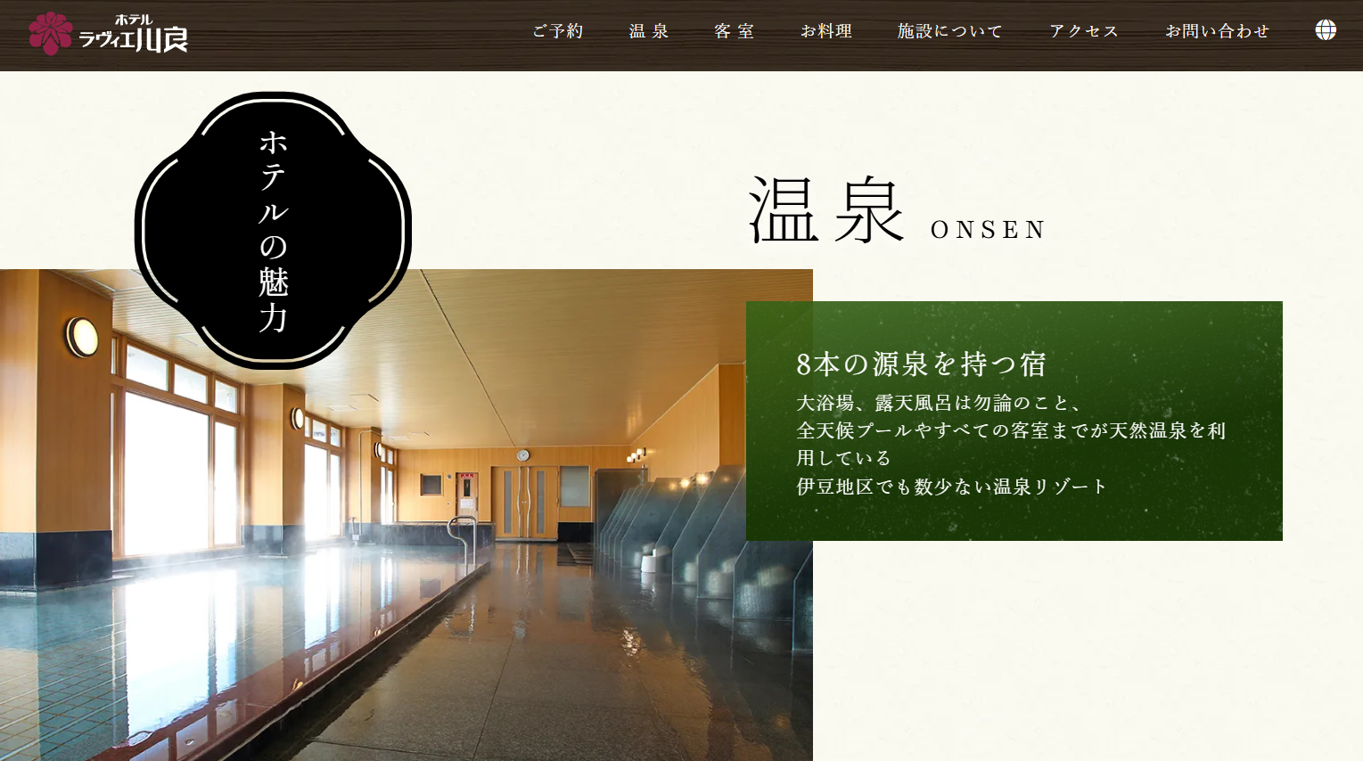 観光スポットへのアクセスも良好で、温泉街散策や伊豆エリアの観光拠点としても便利。美味しい料理と極上の温泉をリーズナブルに楽しみたい方は、ぜひ「ホテルラヴィエ川良」で特別なひとときを体験してみてください。