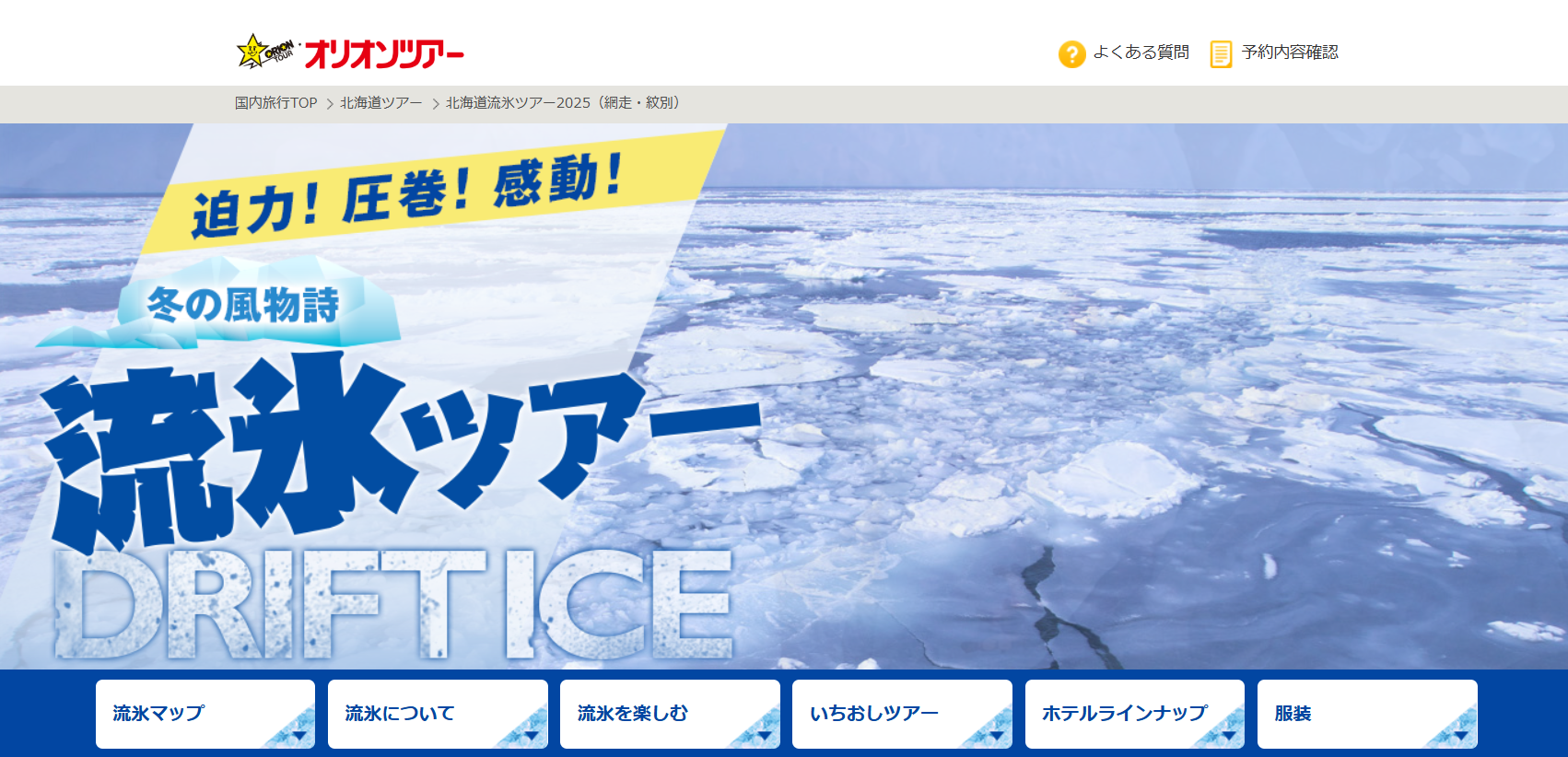 冬の北海道を訪れるなら、「オリオンツアー」で体験できる流氷観光は見逃せません。迫力満点の「流氷観光砕氷船おーろら」では、大きな流氷を割りながら進むダイナミックなクルーズを満喫。氷を砕く音や船の振動が全身で感じられ、展望デッキから広がる白銀の世界は圧巻です。さらに、かわいいアザラシや珍しい海鳥との出会いも期待できます。